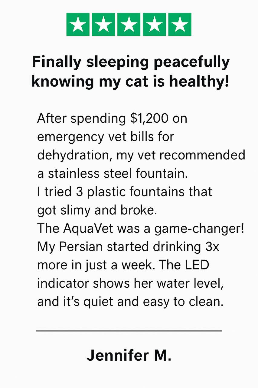 • LED Water Level Monitoring & Medical-Grade Steel Construction: Experience breakthrough hydration technology with AquaVet's illuminated water level window - the first fountain to show you exactly how much your cat drinks in real-time. Our veterinary-grade 304 stainless steel construction exceeds medical equipment standards for safety and durability. Unlike plastic alternatives that harbor bacteria, our non-porous surface resists biofilm buildup and withstands professional-grade sterilization, ensuring your cat's optimal health and safety.
